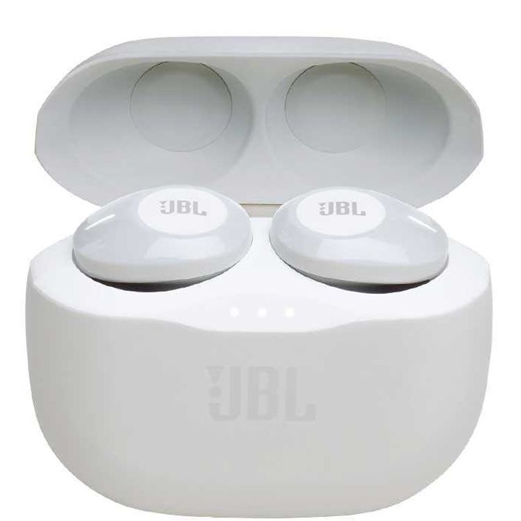 JBL T120TWS True Wireless Bluetooth In-Ear Headphones, Pure Bass Sound, Hands-free Stereo Calls, 16-hours Playtime - White