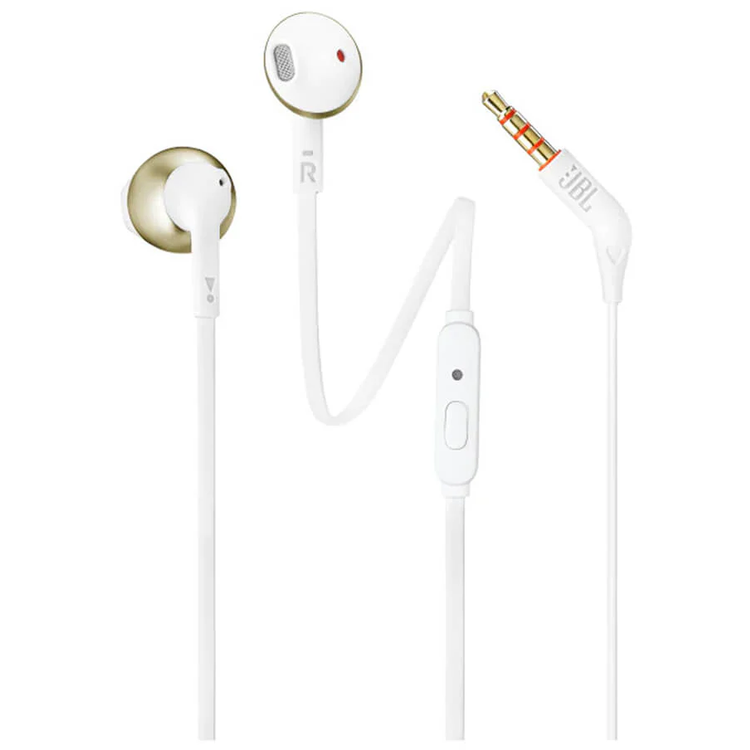 JBL Tune 205 In-Ear Wired Headphones with 3.5mm Audio Jack, Integrated Microphone, 118.2cm Length, JBL Pure Bass Sound, Carrying Pouch - Champagne Gold