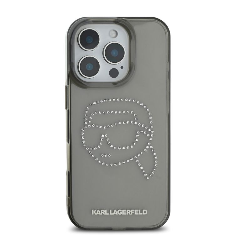 Karl Lagerfeld IML Hard Case for iPhone 16 Pro with Rhinestones Karl Head Logo, Slim Profile, Lightweight, Easy Snap-on, Drop Protection, Sustainable Packing - Black