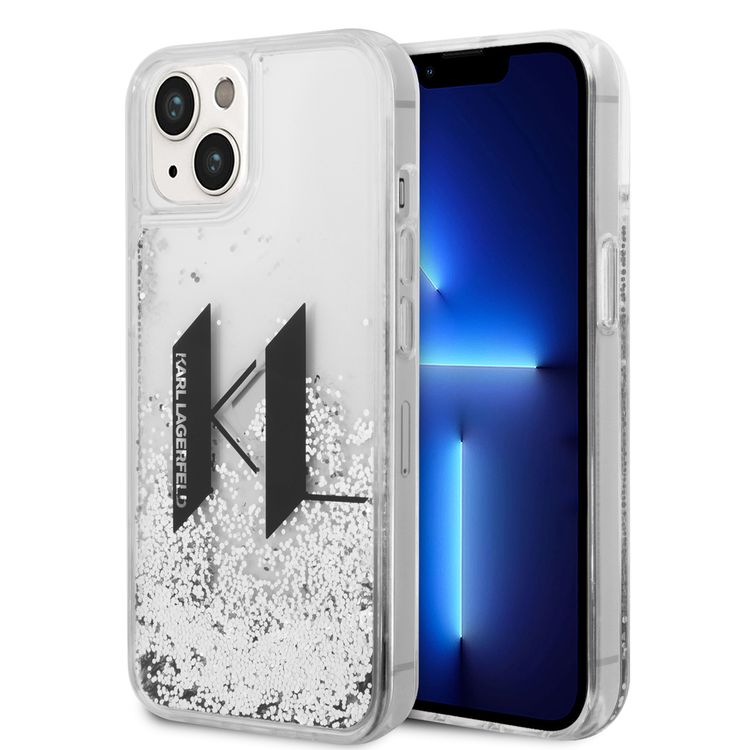 Karl Lagerfeld Liquid Glitter Case for 14, Big KL Logo, Drop & Bumper Protection, Anti-Scratch, Silicone Material, Slim Profile, Easy Snap-On - Silver