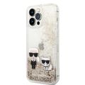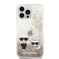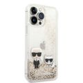 Karl Lagerfeld Liquid Glitter Silicone Case Karl and Choupette Protector iPhone 14 Pro Max Compatibility - Gold