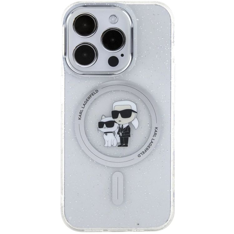 Karl Lagerfeld Magsafe IML Glitter Hard Case for iPhone 16 Pro Max with Karl & Choupette Logo, Slim Profile, Easy Snap-on, Drop Protection, Lightweight, Sustainable Packaging- Clear