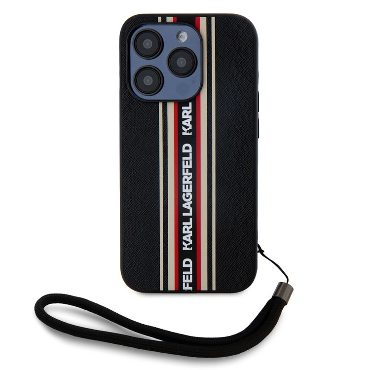 Karl Lagerfeld PU Hard Case with Athleisure Strips for iPhone 16 Pro, Lightweight, High-Quality Material, Comfortable and Secure Grip - Red