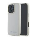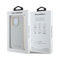 Karl Lagerfeld Saffiano Leather Hard Case with Elongated Metal Logo for iPhone 16 Pro, Drop Protection, Slim Profile - Beige
