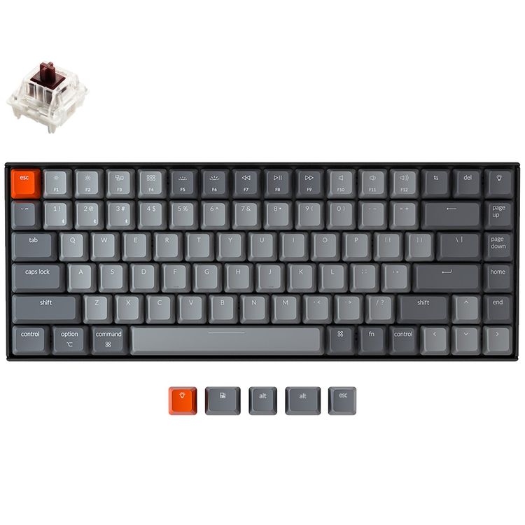 Keychron K2-C3 84 Gateron Mechanical Keyboard with RGB, Brown Switch and Aluminum Frame, Mac/Pc Keyboard, KEYCHRON-KEY-K2-C3 - Black