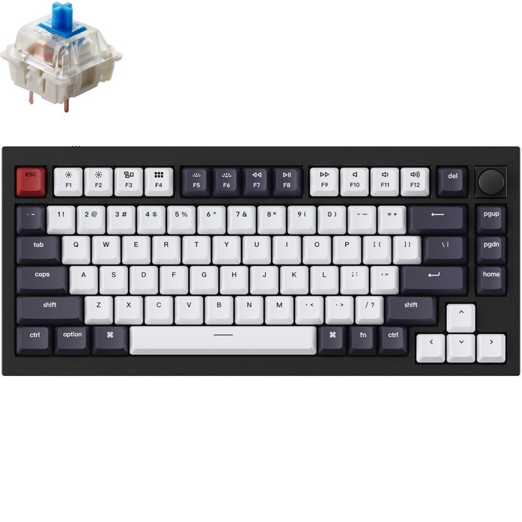 Keychron Q1 QMK Gateron Phantom Mechanical Keyboard with Knob, RGB, Blue Switch & Custom Hot-swappable | Ergonomic Design Gaming Keyboard - Carbon Black