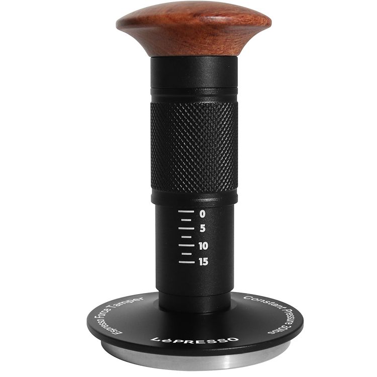 LePresso 58.5mm Impact Tamper with Thread Bottom, Aluminum, Stainless Steel & Wood Material, Compatible with 58mm Portafilter - Black