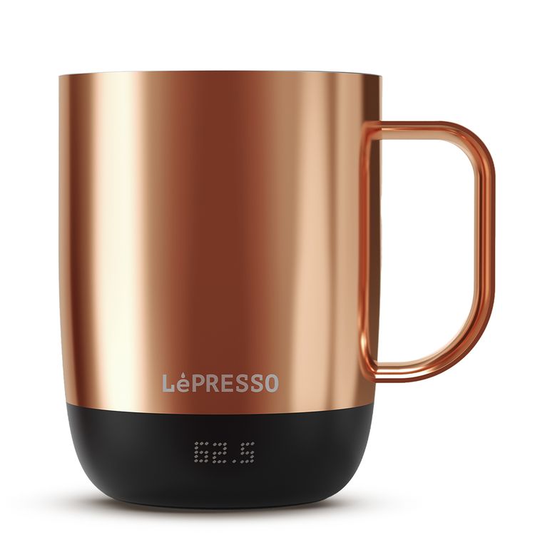 LePresso AURELIO Ceramic Mug with Temperature Control Base, IPX7 Waterproof Grade, Type-C Charging Port, Stainless Steel 304 + PC + Ceramic Material, 300mL Capacity - Rose Gold