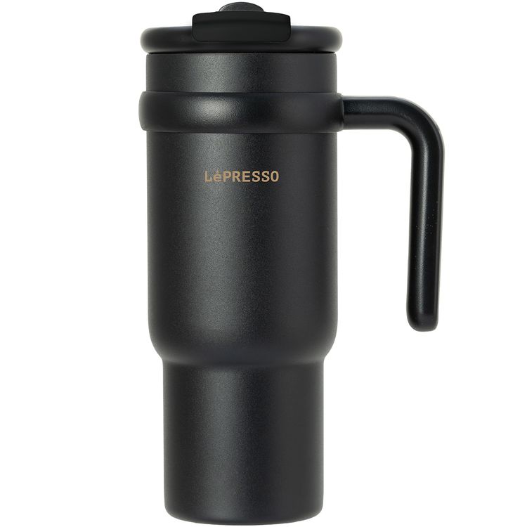 LePresso Coffee Mug with Stainless Straw, 900mL Capacity, Durable Stainless Steel Material, Dual Drink Mode, Lightweight - Black