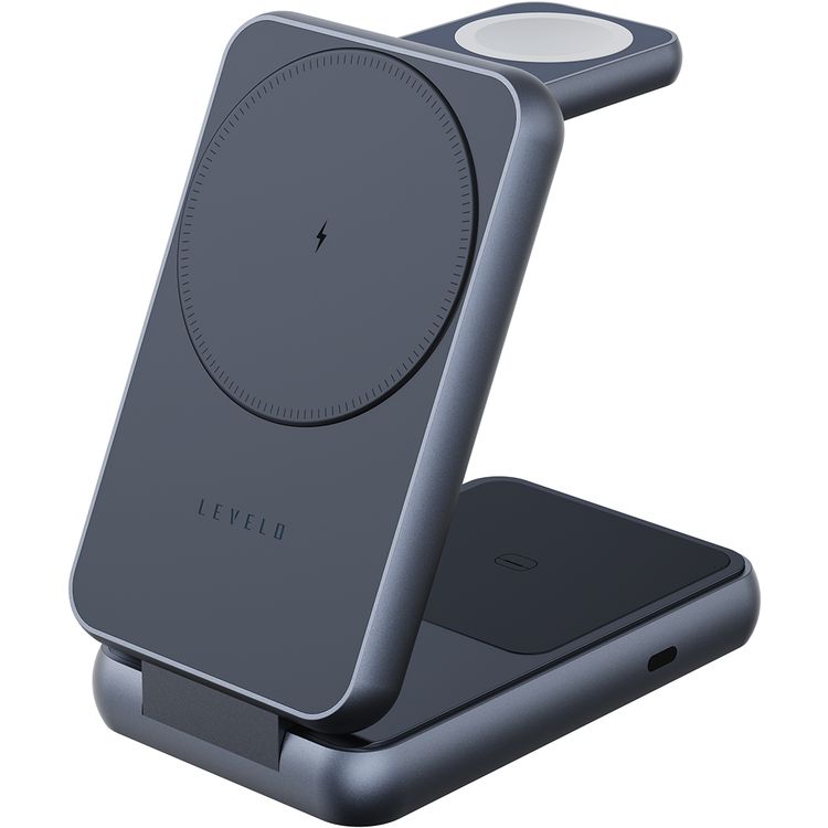 Levelo Aeris 3-in-1 Foldable Wireless MagSafe Charger with iWatch Wireless Charger, ABS & Silicone Material, Short Circuit Protection, LED Indicator, Over-Charge & Over Current Protection, 15W Wireless Fast Charging - Cloudy Gray