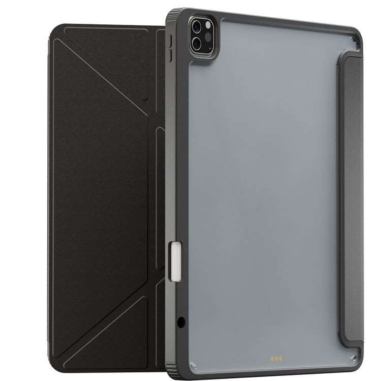 Levelo Conver Clear Back Leather Case for iPad Pro 11" (2nd to 4th Generation), Built-in Pen Slot, Accurate Cut-Outs, Easy Snap-On, 360° Protection, Vertical & Horizontal Positioning - Black