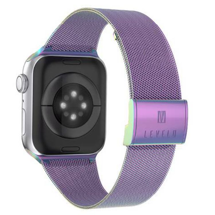 Levelo Double Milanese Watch Strap for Apple Watch 42/44/45mm, Stainless Steel Material, Double-lock Folding Buckle, Adjustable Strap, Easy Installation - Iridescent