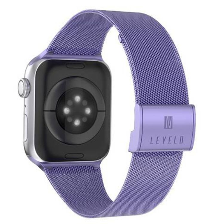 Levelo Double Milanese Watch Strap for Apple Watch 42/44/45mm, Stainless Steel Material, Double-lock Folding Buckle, Adjustable Strap, Easy Installation - Lavender Purple