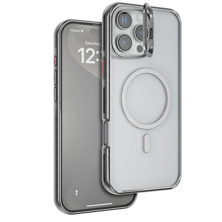 Levelo Elio PC Case with Camera Ring Stand for iPhone 16 Pro Max, Built-in Kickstand, MagSafe Compatible - Silver