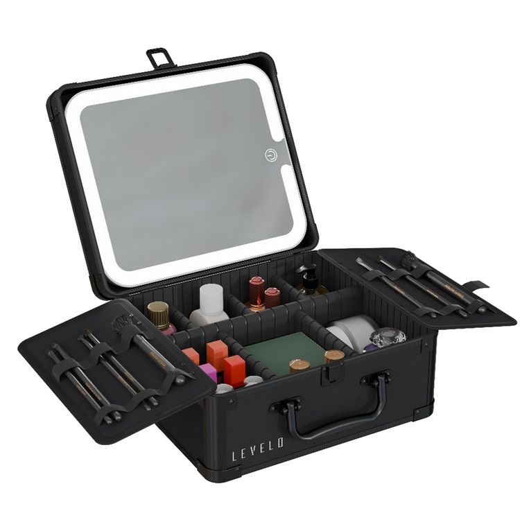 Levelo Elite Make-Up Box Organizer with Detachable Magnetic Mirror, 3 Light Modes, Adjustable Dividers, 4-5 Hours LED Working Time, Touch Control, USB-C Charging Port - Black