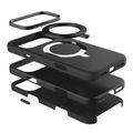 Levelo Iris Pro MagSafe Liquid Silicone Case with Built-in 360° Kickstand for iPhone 17 Pro, Metal Accents, Shock-Resistant Bumper, Aluminum Alloy Frame for Camera & Buttons, Drop-Tested, Strong Magnets, Premium Silicone Grip - Black