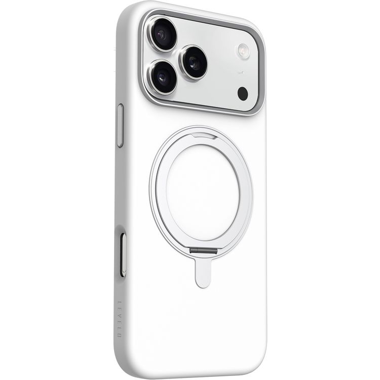 Levelo Iris Pro MagSafe Liquid Silicone Case with Built-in 360° Kickstand for iPhone 17 Pro Max, Metal Accents, Shock-Resistant Bumper, Aluminum Alloy Frame for Camera & Buttons, Drop-Tested, Strong Magnets, Premium Silicone Grip - Silver