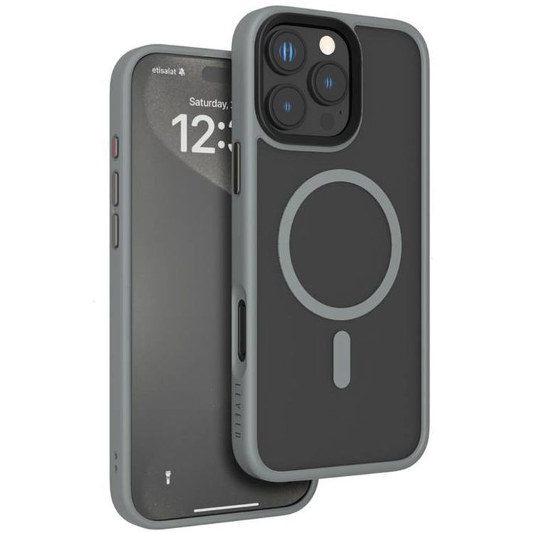 Levelo Matte Solo Case with MagSafe Compatibility for iPhone 16 Pro Max, Impact-Resistant Corners, Anti-Fingerprint, Hybrid Construction - Gray