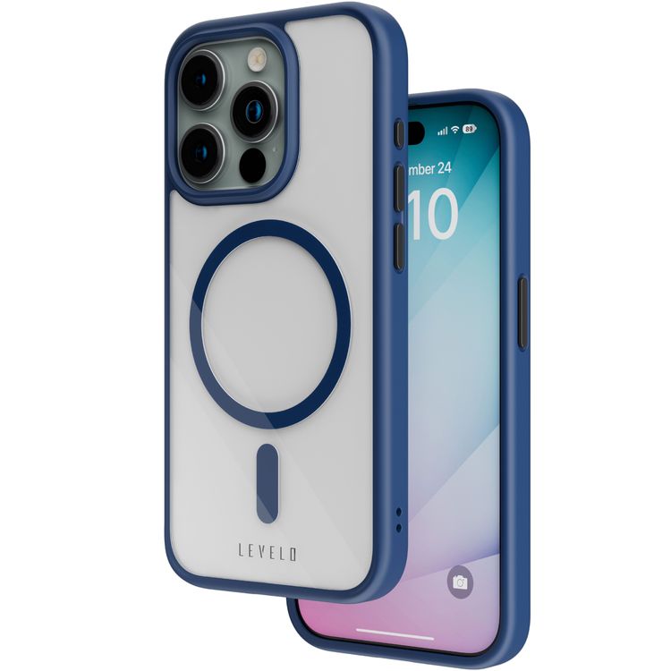 Levelo MagSafe Solo Case for iPhone 15 Pro, Hybrid Material with Matte TPU Bumper, Camera Protection, Reinforced Corners with Airguard, Shock-Proof Edges, Anti-Scratch - Blue