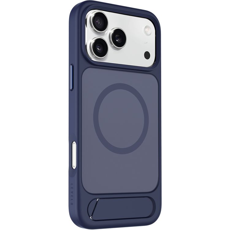 Levelo Matteo Hybrid Kickstand Case with Matte Design for iPhone 17 Pro Max, Anti-Fingerprint Coating, Impact-Resistant Corners, Raised Bezels for Camera & Screen, MagSafe Compatible, Shock-Resistant Bumper, Drop-Tested - Dark Blue