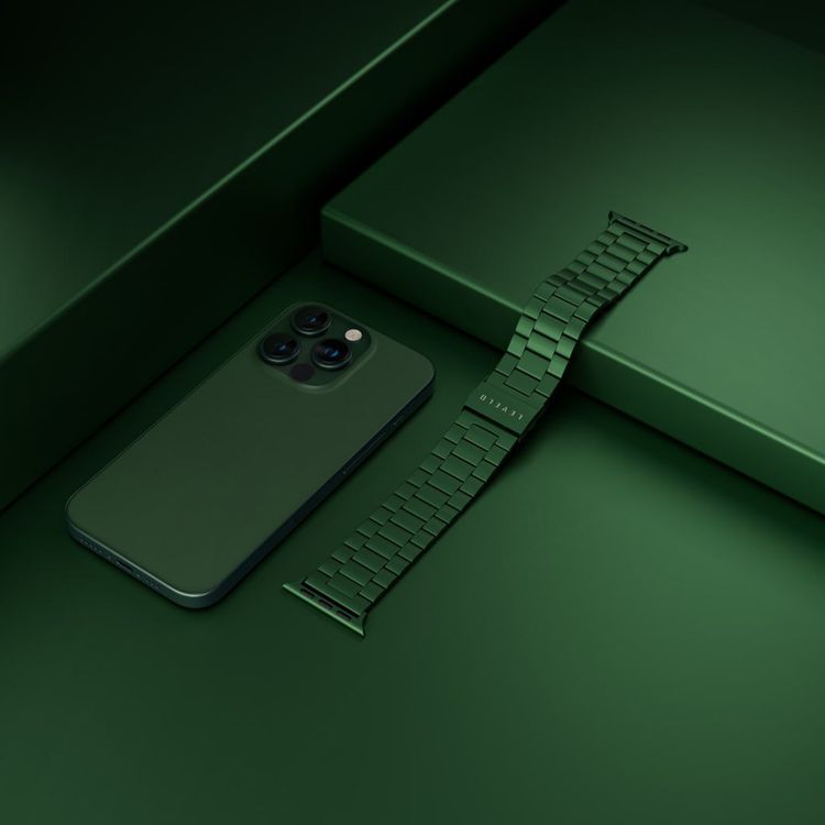 Levelo Monet Stainless Steel Watch Strap with Adjustable Links for Apple Watch 49/46mm, Hypoallergenic Material, 24/7 Wearability, Anti-Oxidation Technology, Compatible with SE, Series 9, 8, 7, 6 & 5 - Green