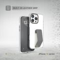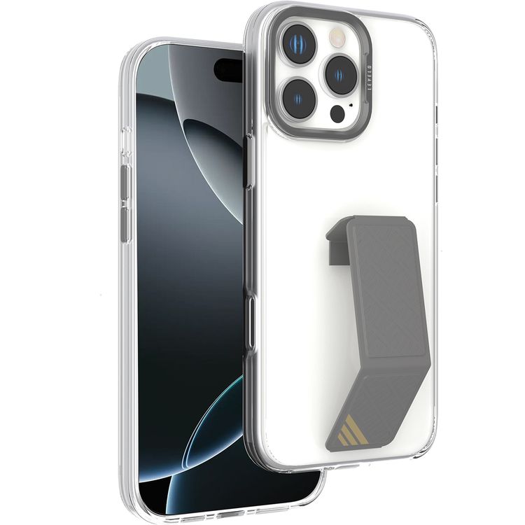 Levelo Morphix Clara Case for iPhone 16 Pro Max, Hybrid Material, Impact-Resistant Corners, Built-in Leather Grip, Metal Camera Ring - Gray
