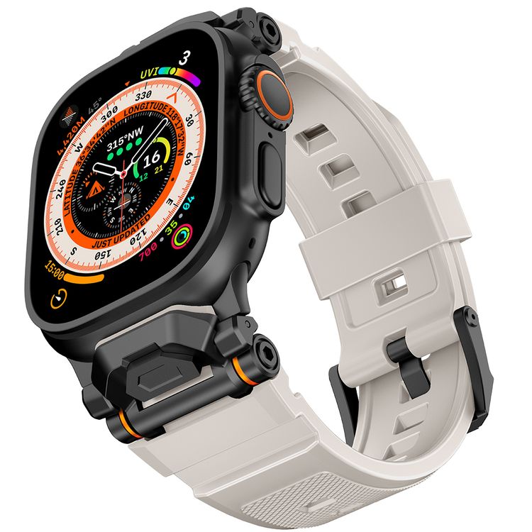 Levelo Nico Watch Strap for Apple Watch 49/46mm with Metal Buckle Closure, Compatible with SE Series 9, 8, 7, 6, 5, Silicone & Stainless Steel Finish, Lightweight & Flexible Fit, Sweat-Resistant & Water-Resistant, Hypoallergenic Material, Extended Band Interaction - Moonlight White