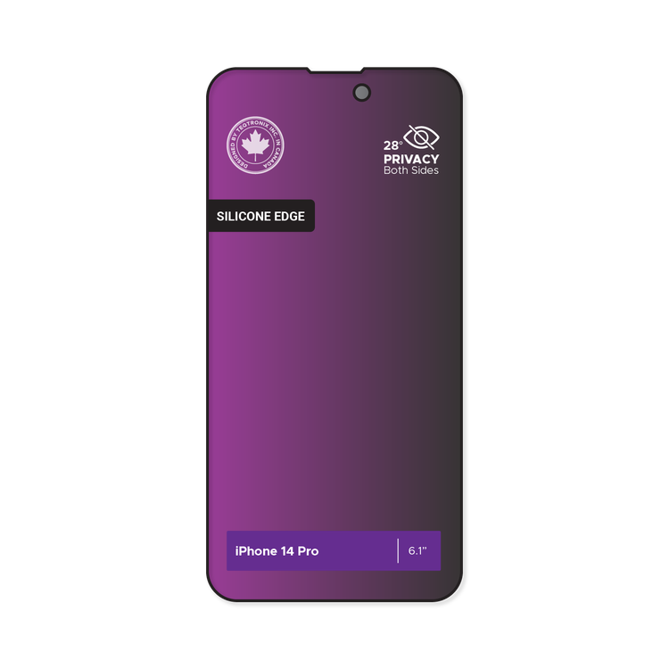 Levelo Privacy Tempered Screen Protector, Black-Edition Silicone Edge, iPhone 14 Pro Compatibility - Black