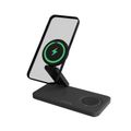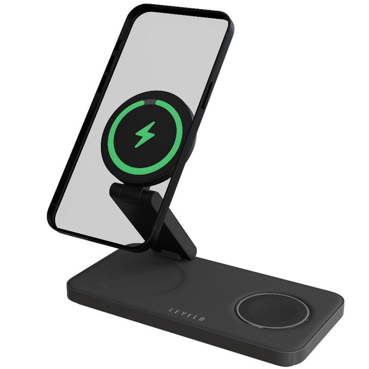 Levelo Quantum 3-in-1 Wireless Charger with 15W Phone Output, 5W AirPods Output, 3W iWatch Output, Strong N52 Magnet, LED Indicator, Compatible with MagSafe, Over Temperature Protection, Simultaneous Charging, Over Voltage Protection, Fast Charging, Foldable Design - Black