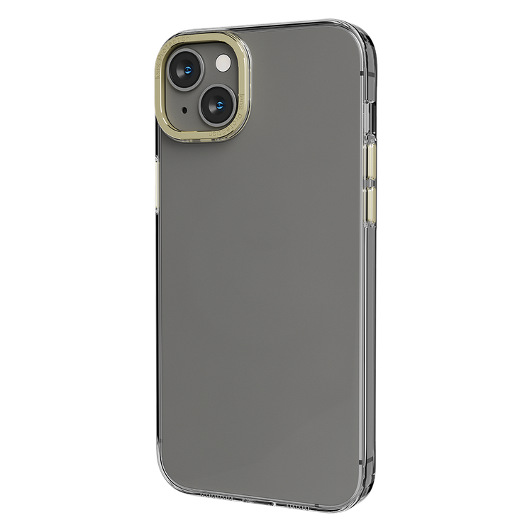 Levelo Sensa Clear Back Case for iPhone 14 Plus, Metal Camera Ring, Shockproof Edges, Highly Transparent, Easy Snap-on - Clear / Champagne