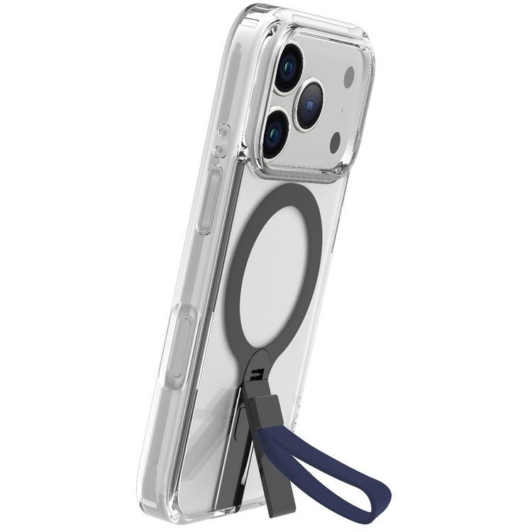 Levelo Spira MagSafe Clear Grip Case for iPhone 17 Pro Max, Strong Magnets, Horizontal & Vertical Viewing, Shock-Resistant Bumper, Anti-Scratch, 360° Rotating Metal Kickstand - Midnight Blue