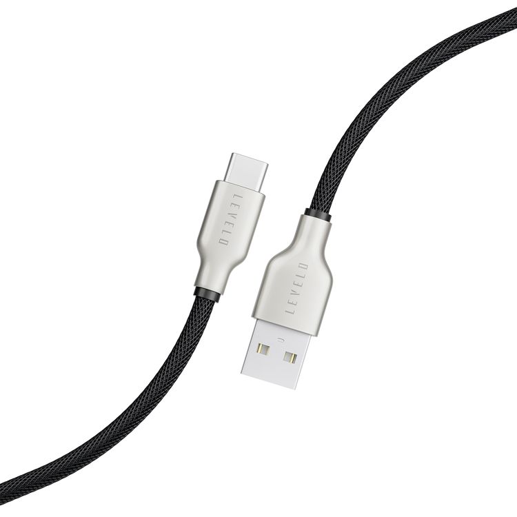 Levelo Weave Net USB-A to USB-C Cable, 1.1m Cable Length, 480Mbps Data Transfer Speed, 3000+ Bends Lifespan, Fast Charge, Tangle-Free Design - Black