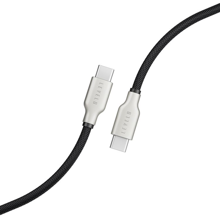 Levelo Weave Net USB-C to USB-C Cable with 100W Power Delivery, 1.1m Cable Length, 480Mbps Data Transfer Speed, 3000+ Bends Lifespan, Fast Charge, Tangle-Free Design - Black