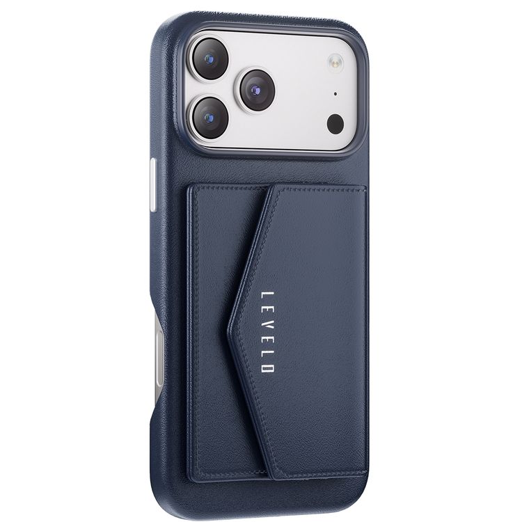 Levelo Vertex PU Leather Wallet Case for iPhone 17 Pro, Shock-Resistant Bumper, Raised Bezels for Camera & Screen, MagSafe Compatible, Drop-Tested, Full-Wrap Leather Build, Detachable Magnetic Wallet - Dark Blue