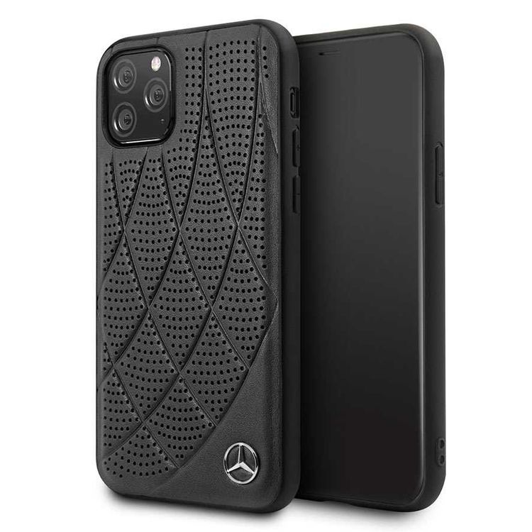 Mercedes-Benz Hard Case Quilted Perforated Genuine Leather For iPhone 11 Pro - Black