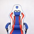 NASA Discovery Gaming Chair, Faux Leather, Height Adjustable, High Density Foam, Recline Mechanism - White/Blue/Red