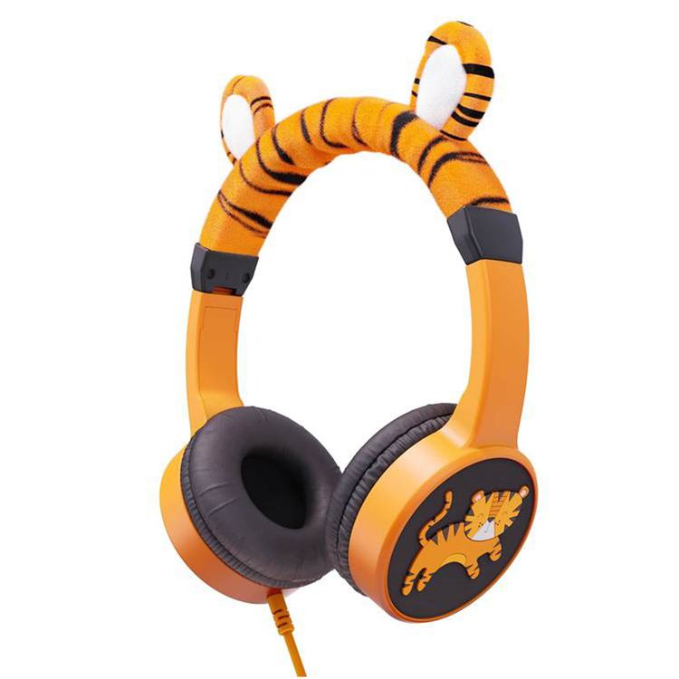 Planet Buddies Kids Wired Headphones with 85 dB Volume Limited, Plug and Play, Lightweight and Comfortable Design, 40 mm Driver Size, Adjustable Headband Suitable for Children (Tiger) - Orange
