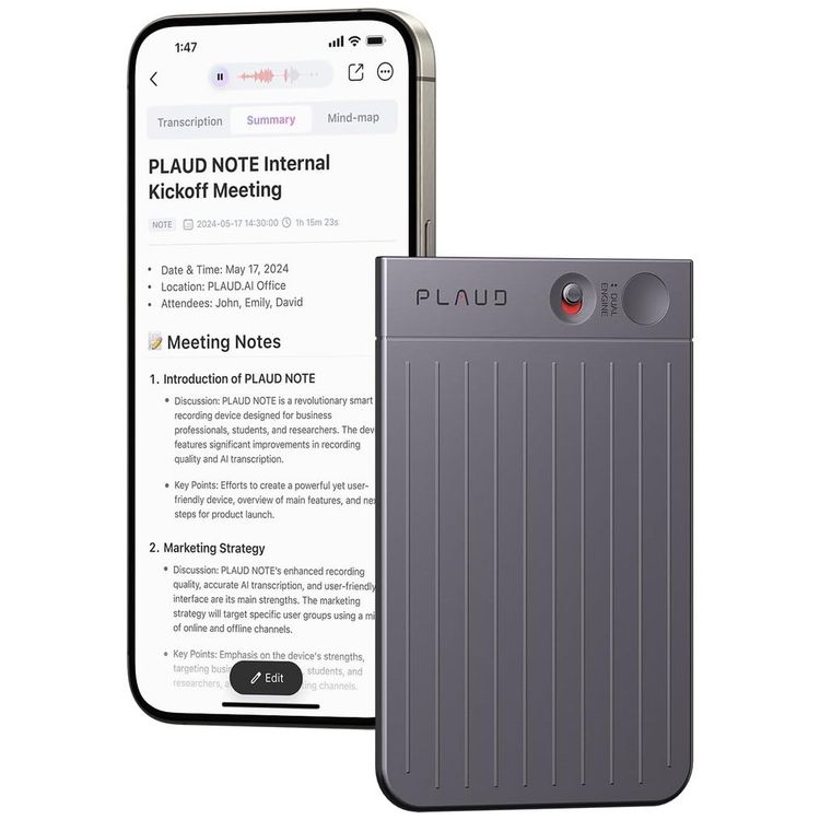 PLAUD Note AI Voice Recorder,64 GB Storage, 2h Charging Time, 10m Effective Recording Range, 400mAh Battery - Black
