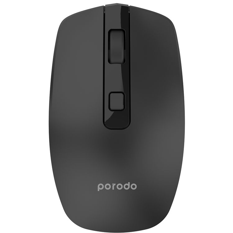 Porodo 1600 DPI Wireless Dual Mode Mouse with 10m Wireless Range, 30 Days Working Time, Built-in Battery - Black
