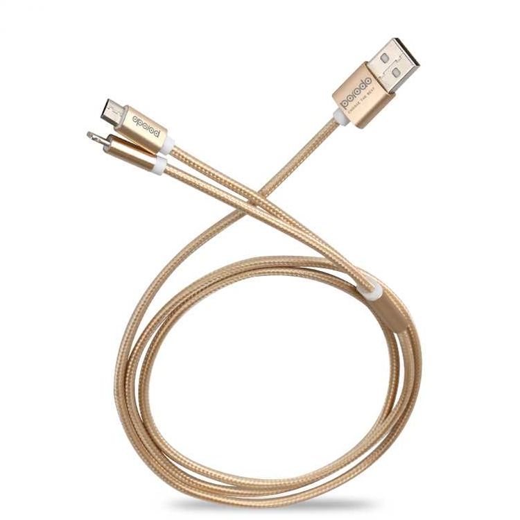 Porodo Lightning Cable GC-34 2 in 1 Braided Metal Cable - Gold