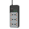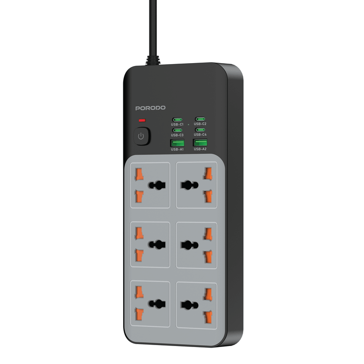 Porodo 3000W Universal Power Strip with 6×AC Sockets, 4×Type-C & 2×USB-A Ports, Safety Power Switch, 24-Hour Timer, Built-in Surge Protection, Fireproof PC Material, UK 3-Pin Plug with 3m Cord Length, Multi-Device Charging - Gray