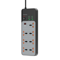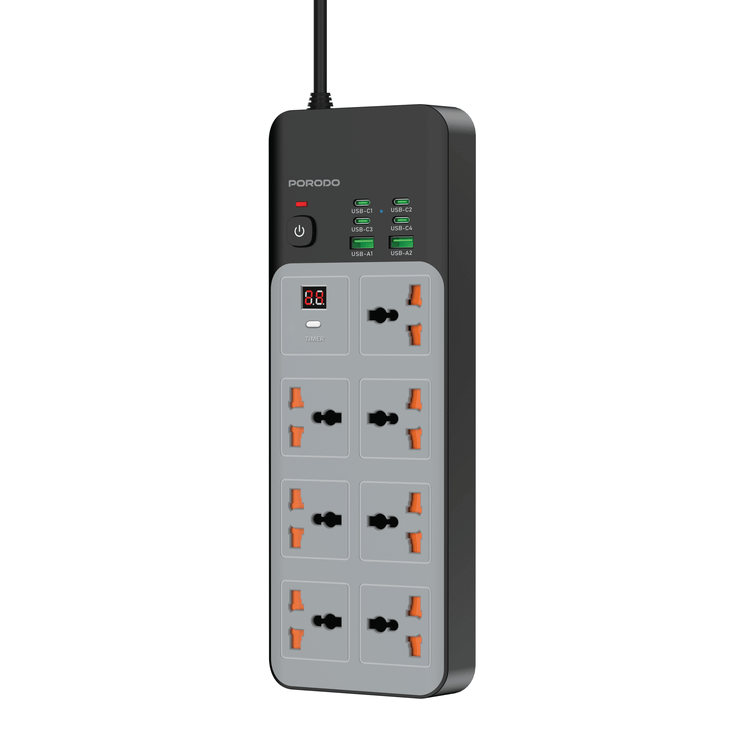 Porodo 3000W Universal Power Strip with 7×AC Sockets, 4×Type-C & 2×USB-A Ports, Safety Power Switch, 24-Hour Timer, Built-in Surge Protection, Fireproof PC Material, UK 3-Pin with 3m Cord Length, Multi-Device Charging - Grey