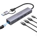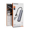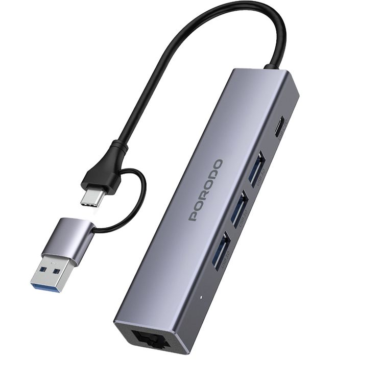 Porodo 5-in-1 Multi-Port Hub with RJ45, USB-C & Triple USB 3.0 Ports, 100W Power Delivery, Aluminum Alloy Housing, Universal Compatibility, Plug & Play Design - Gray