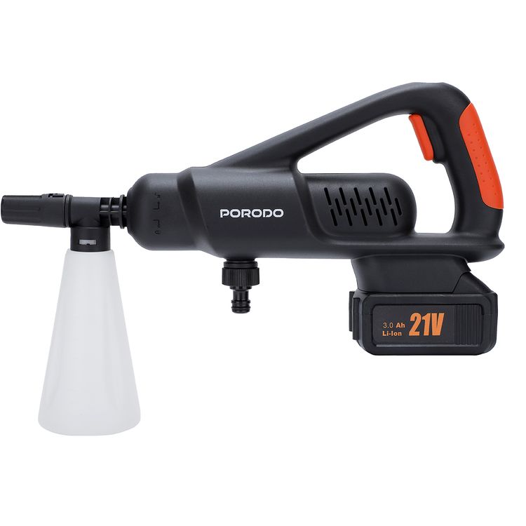 Porodo 6-in-1 Car Washing Machine Brushless with Speed Control, Multi-Functional Spray Tip, 3-Point Water Connection, Adaptable Pressure - Black