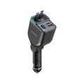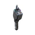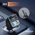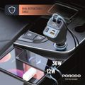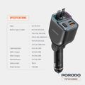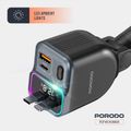 Porodo 65W Car Charger with Dual Retractable Cables, Real-Time Voltage Display, Type-C & Lightning Cable Types, USB-A & USB-C Ports, Universal Compatibility - Black