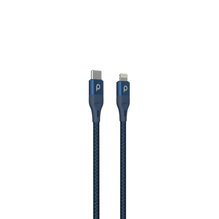 Porodo Aluminum PD Braided USB-C to Lightning Cable 0.25M 9V - Blue