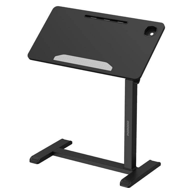 Porodo Bedside & Standing Desk for Tablet & Laptop with Cup Holder, Adjustable Height, 10kg Maximum Load, Hidden Wheel Design, Up to 90° Tilt Angle - Black