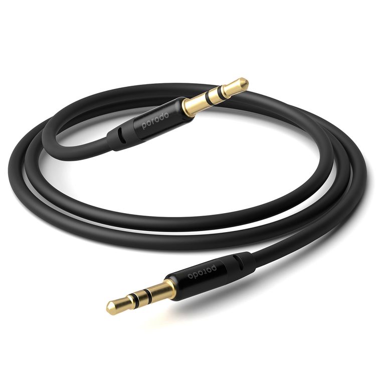Porodo Blue AUX to AUX Cable with 1.2m/4ft Length, 2.4A, TPE and PVC, Excellent Sound, Safe & Reliable - Black