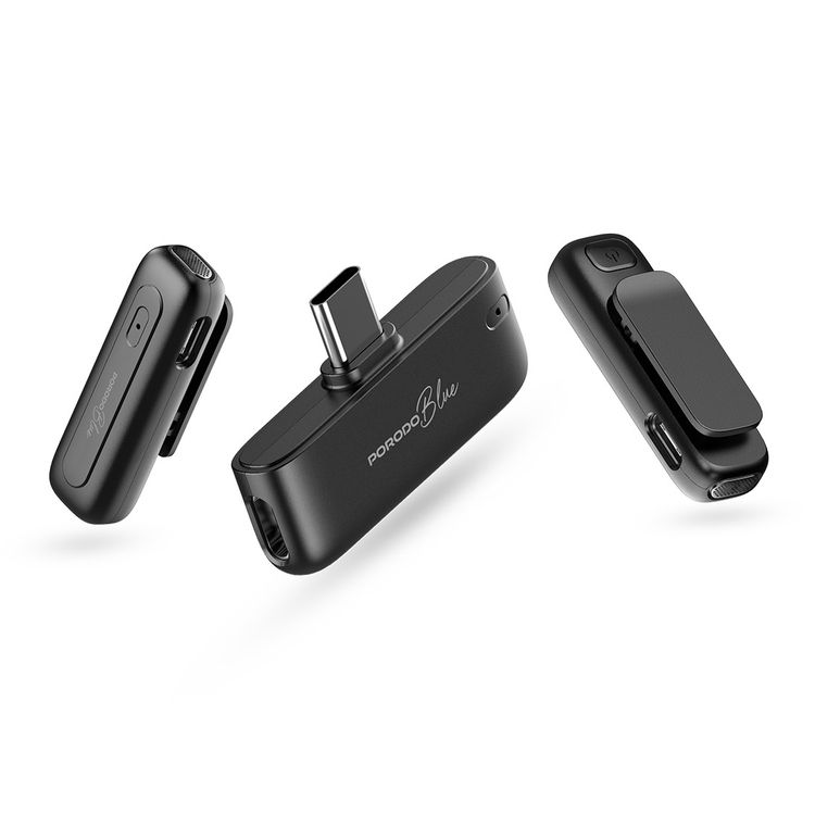 Porodo Blue Professionall Dual Wireless Microphone with Advanced Noise Cancellation, Smart Plug & Play Audio, Omnidirectional, Long-Distance Transmission, Instant Auto-Pairing, Universal Device Compatibility - Black