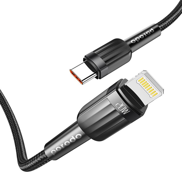 Porodo Braided 1M PD20W USB-C to Lightning Fast charging Cable - Black